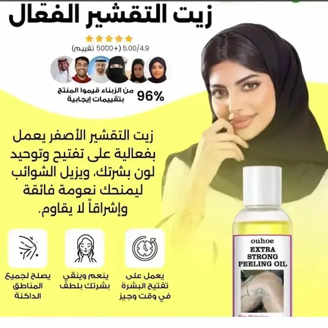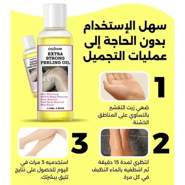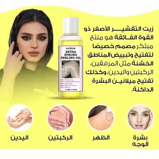 زيت التقشير الأصفر هذا مناسب لجميع أنواع البشرة، بما في ذلك الجافة والدهنية والمختلطة والعادية. ينظف بلطف وينعم ويشد المسام، مما يساعد على تحسين البهتان ولون البشرة غير المتساوي للحصول على بشرة أكثر صحة. تم تركيبه بمكونات طبيعية مثل سنتيلا اسياتيكا، وهيالورونات الصوديوم، وجذر عرق السوس، ويقدم نتائج مرئية في غضون أسبوع مع الاستخدام المنتظم. سهل الاستخدام في المنزل، فهو يقشر سطح الجلد، ويتركه ناعمًا ومنتعشًا. مثالي لعلاج الخطوط الدقيقة والخشونة وجفاف اليدين وحب الشباب والمسامير.