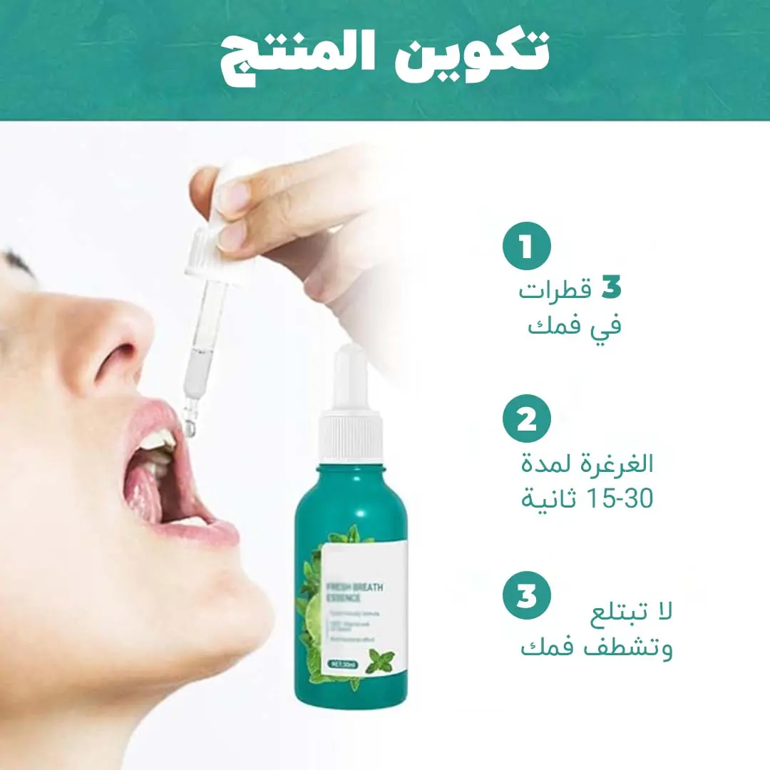 عمل دائم: تحتاج فقط إلى استخدام 1-3 قطرات من خلاصة العناية بالفم و15 ملليلتر من الماء في كل مرة، تدوم لمدة 8 ساعات، بعد الاستخدام لن تترك طعمًا سيئًا في الفم، وتحافظ على أنفاسك منتعشة لفترة طويلة.