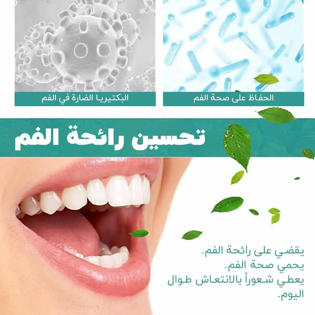 يزيل رائحة الفم الكريهة: تساعد التركيبة القوية على التخلص من رائحة الفم الكريهة، مما يجعل فمك يشعر بالنظافة والانتعاش. استخدمه يوميًا للحصول على أفضل النتائج.