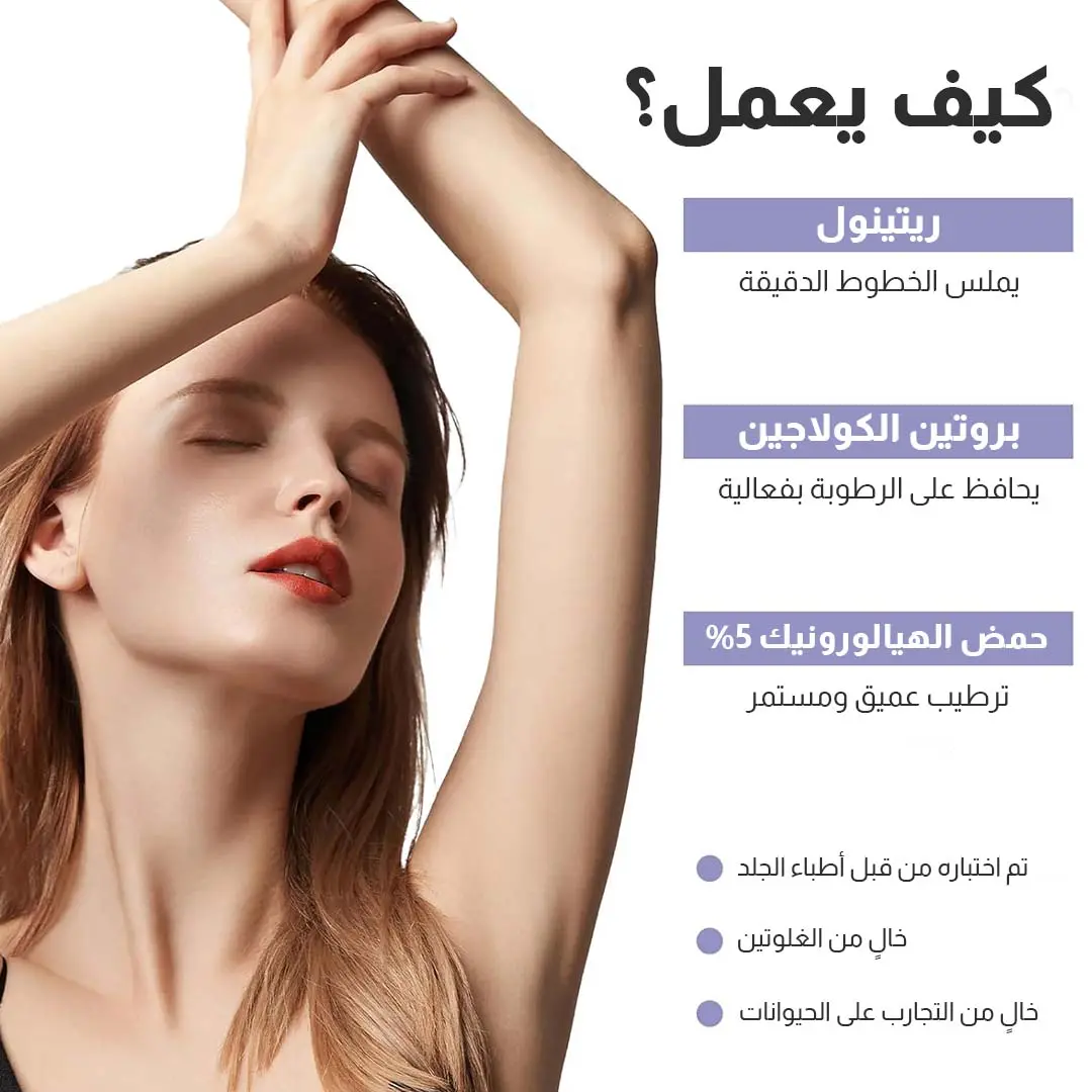 يساعد المزيج المتآزري من الريتينول اللطيف والكولاجين على تعزيز تجديد البشرة وتعزيز مرونتها وتقليل مظهر التجاعيد وملمس الكريبي - مما يترك البشرة ناعمة ومنتعشة