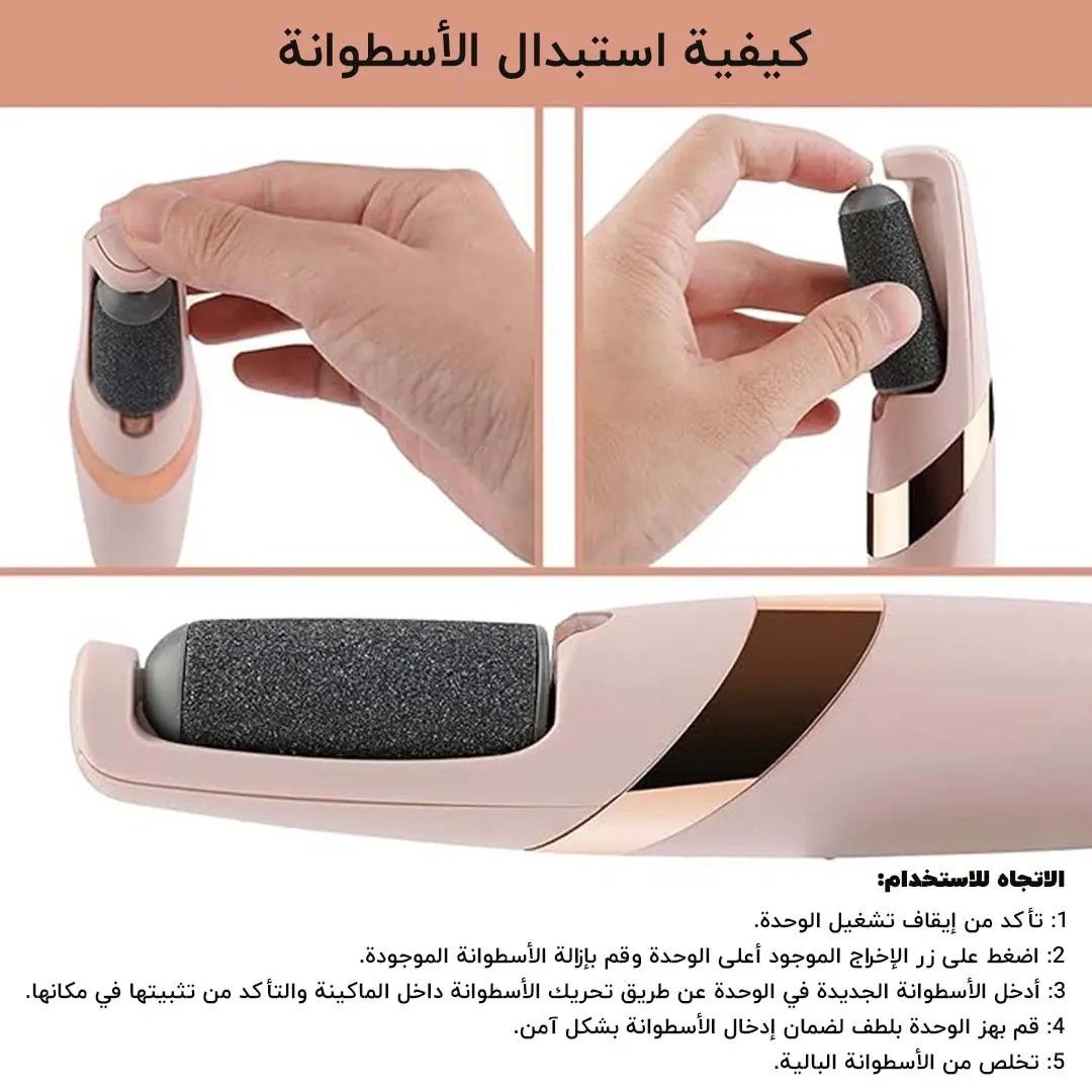 مجموعة العناية بالقدمين: يتضمن فرشاة كهربائية، كابل USB، رأسان بديلان، وفرشاة تنظيف، تلبي مختلف احتياجات العناية بالقدم.
