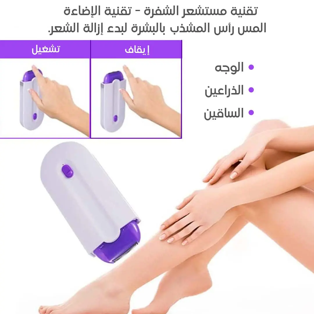 لطيف على البشرة: مصمم لإزالة الشعر بسلاسة وبدون ألم، الجهاز لطيف على جميع أنواع البشرة، مما يضمن تجربة مريحة حتى للمناطق الحساسة.