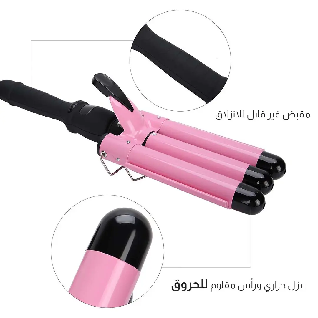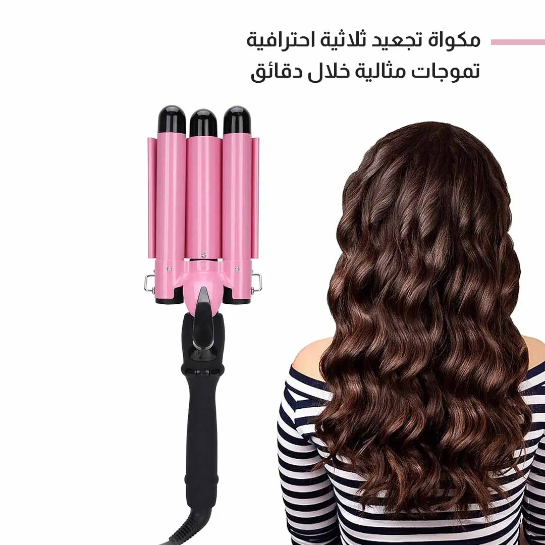 مكواة تجعيد الشعر من السيراميك الاحترافية ثلاثية الاسطوانات