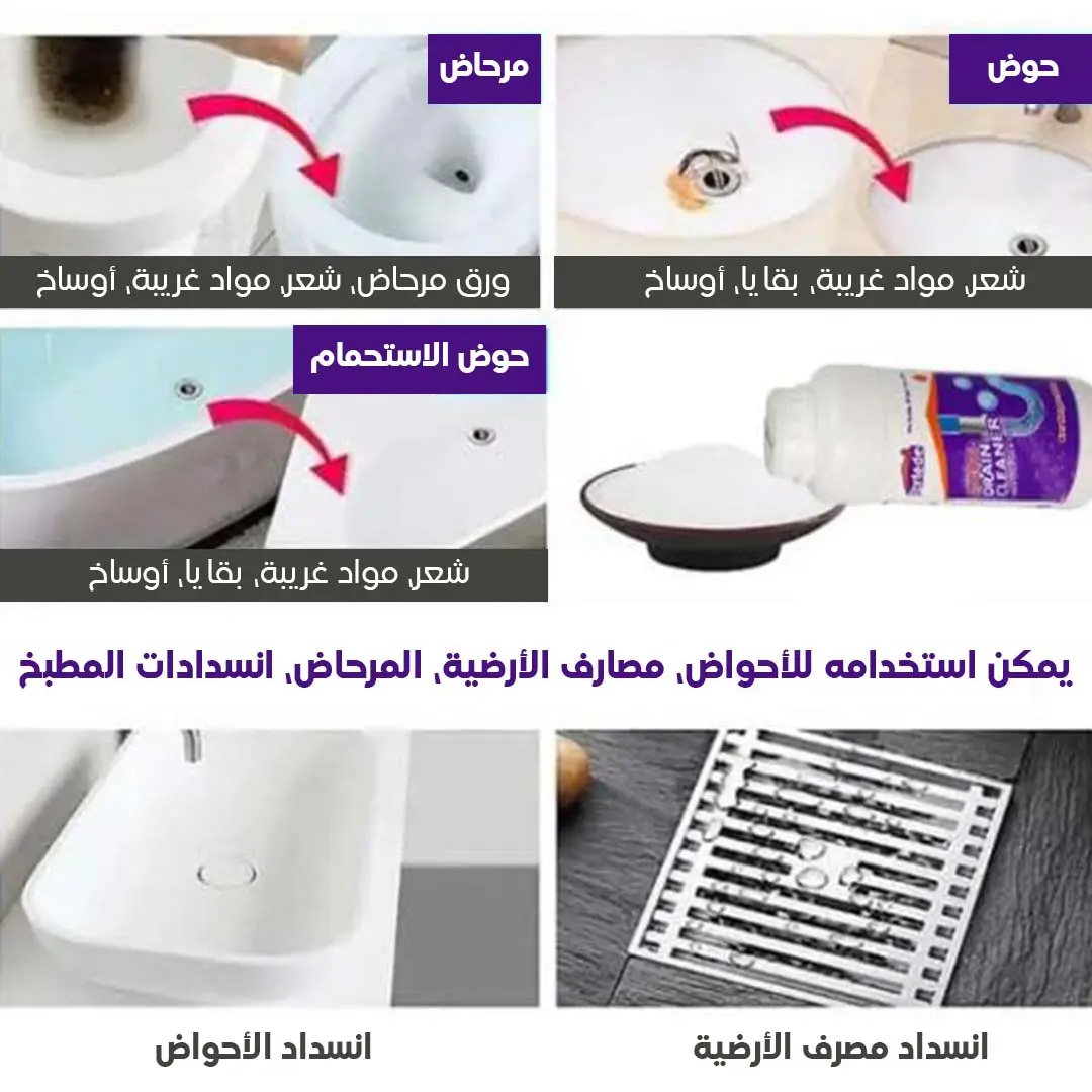 يذيب الشحوم وبقايا الطعام والشعر والأوساخ المتراكمة داخل المصارف، مما يسمح بتدفق المياه بسلاسة مرة أخرى.