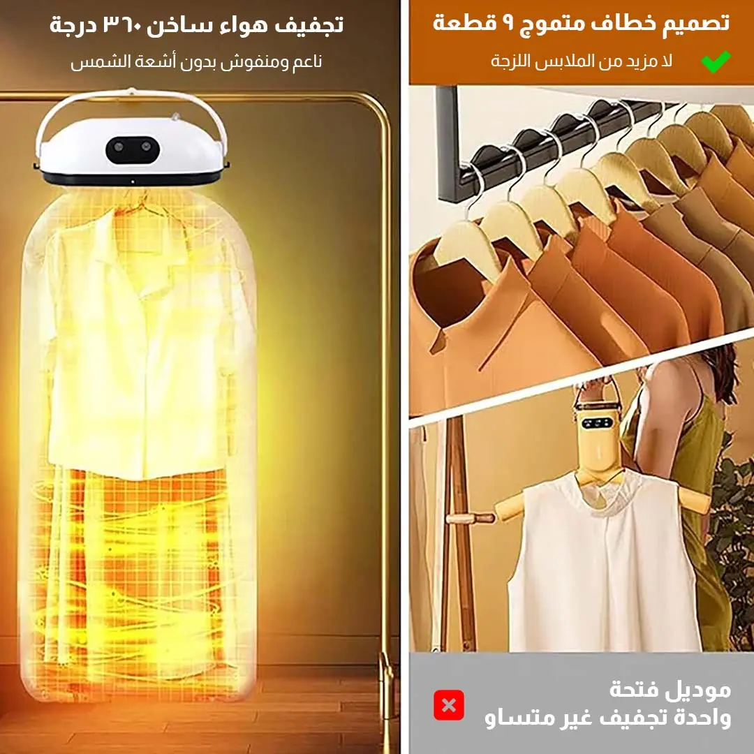 【مجفف ملابس محمول】حجم صغير ومدمج، مريح جدًا للحمل، يمكنه تجفيف عدة قطع من الملابس في نفس الوقت بعد التشغيل، مريح وسريع وفعال، مزود بغطاء قابل للفصل، سهل التنظيف.