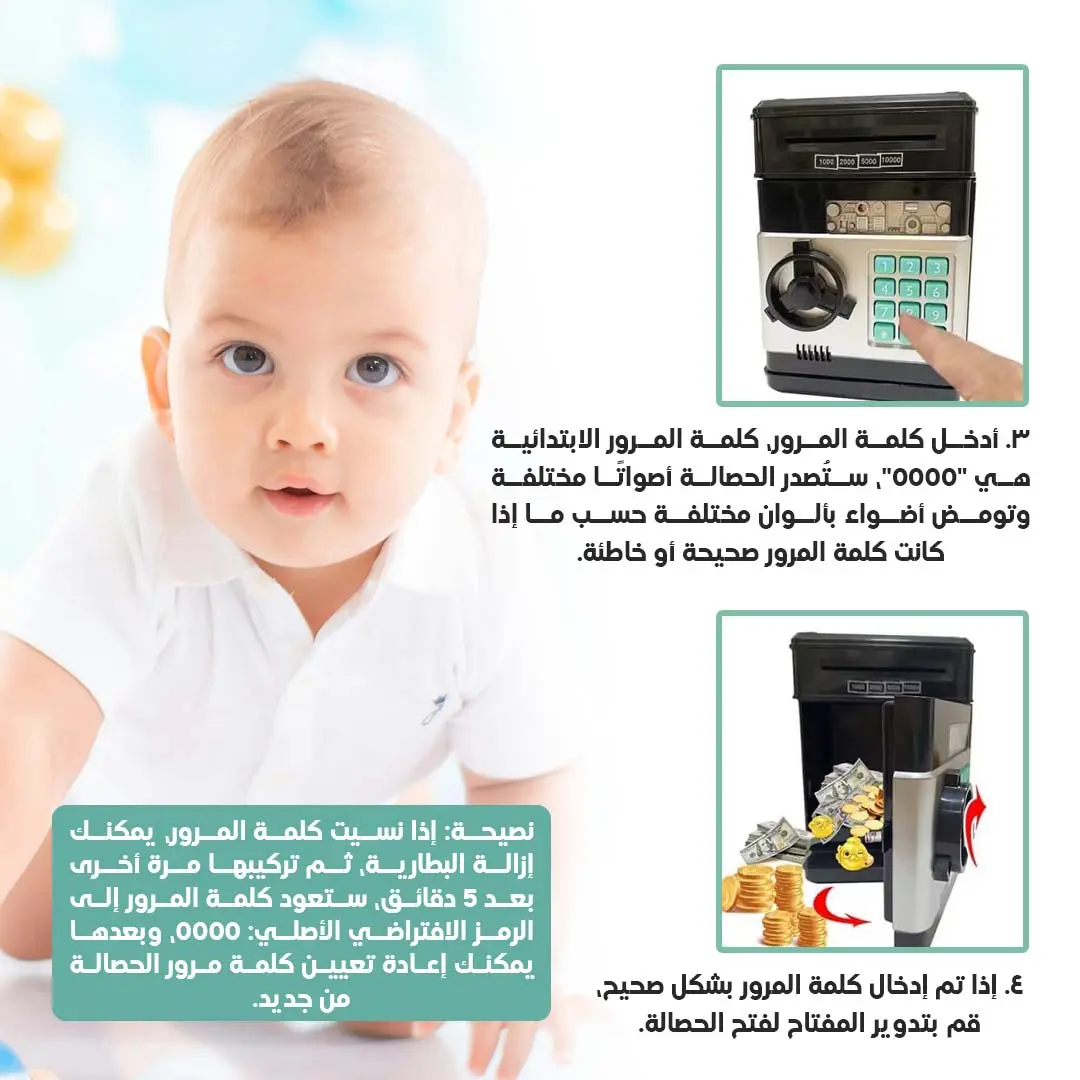 سعة عالية: يمكن تخزين 600 قطعة من العملات المعدنية أو 100 قطعة من النقود الورقية. مثيرة للاهتمام ومضحكة، منتج لا غنى عنه للأطفال أو الهدايا، تساعد طفلك بشكل كبير على تطوير عادة جيدة لتوفير المال.