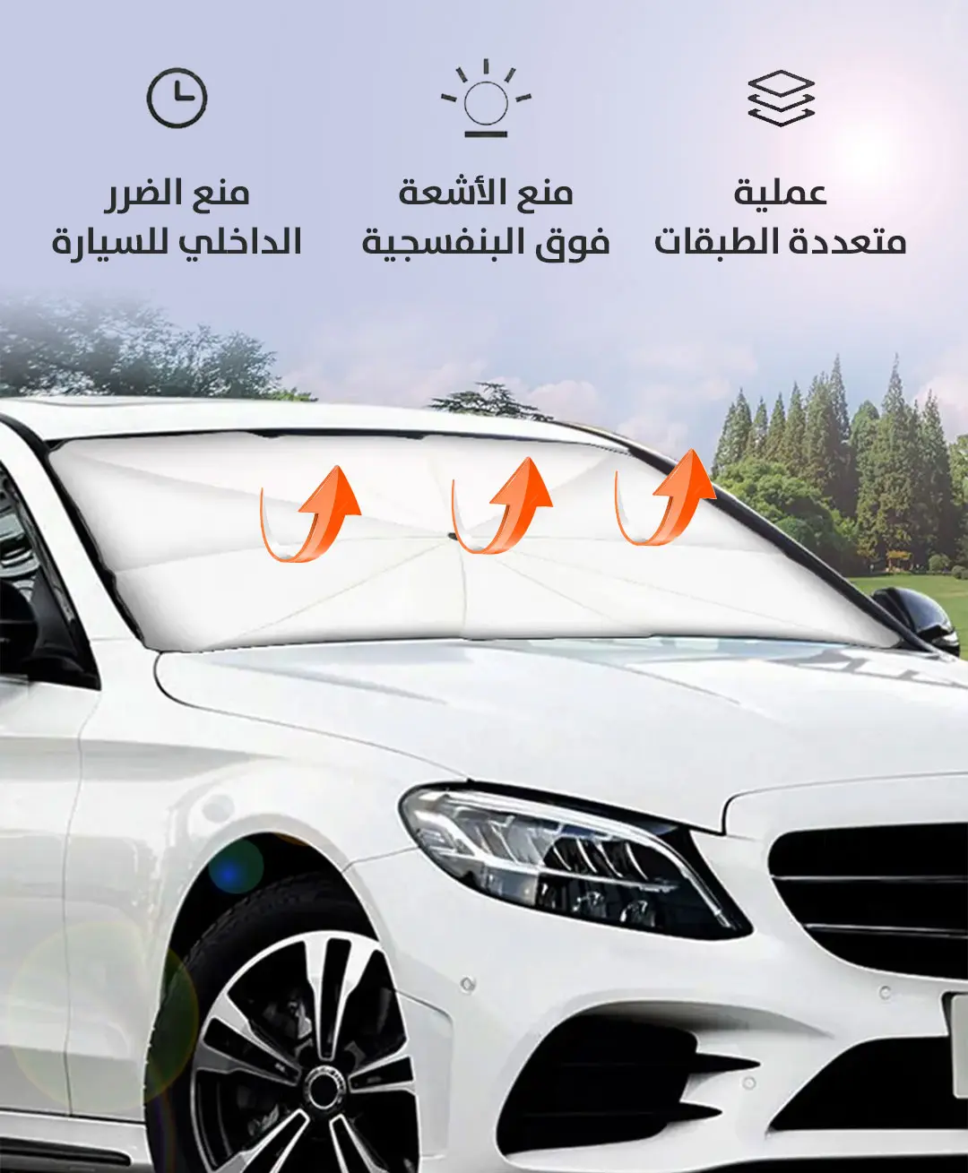 مظلة سيارة داخلية تعمل على عزل حرارة وأشعة الشمس والمحافظة على برودة المقاعد والدركسون سهلة التركيب والأغلاق تأتي مع قواعد لثباث عاليعالية الجودة